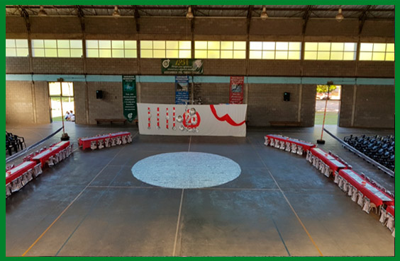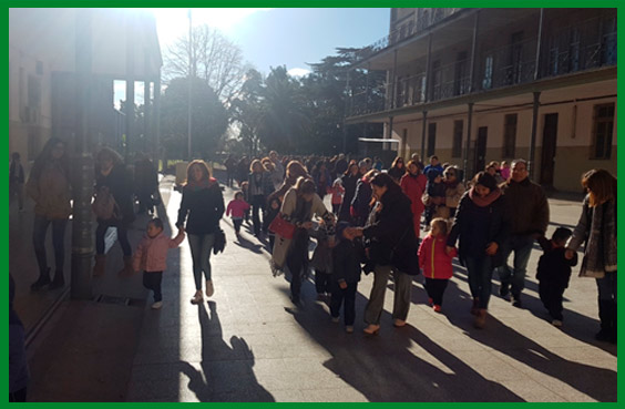 Para los actos escolares utilizamos el polideportivo que se encuentra enfrente.