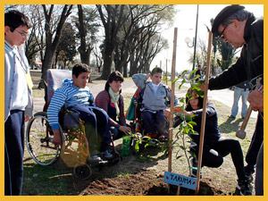 También, como parte del Proyecto, armamos germinadores de semillas de árboles nativos: timbó ("oreja de negro"), espinillo y sen del campo. Además germinamos semillas del Jacarandá que crece en la entrada del Colegio. Tratamos a las semillas para que puedan germinar y llevamos una planilla de registros de su evolución. Cuando estuvieron listas, las plantamos y cuidamos hasta obtener varios plantines de cada especie. Ahora tenemos alrededor de 20 plantines de espinillo, 10 de sen del campo y 5 de timbó, ¡y un montón de retoños del jacarandá de la escuela! Más adelante reproduciremos a partir de sus semillas, recolectadas por nosotros, los seibos y los talas del Parque Temático.